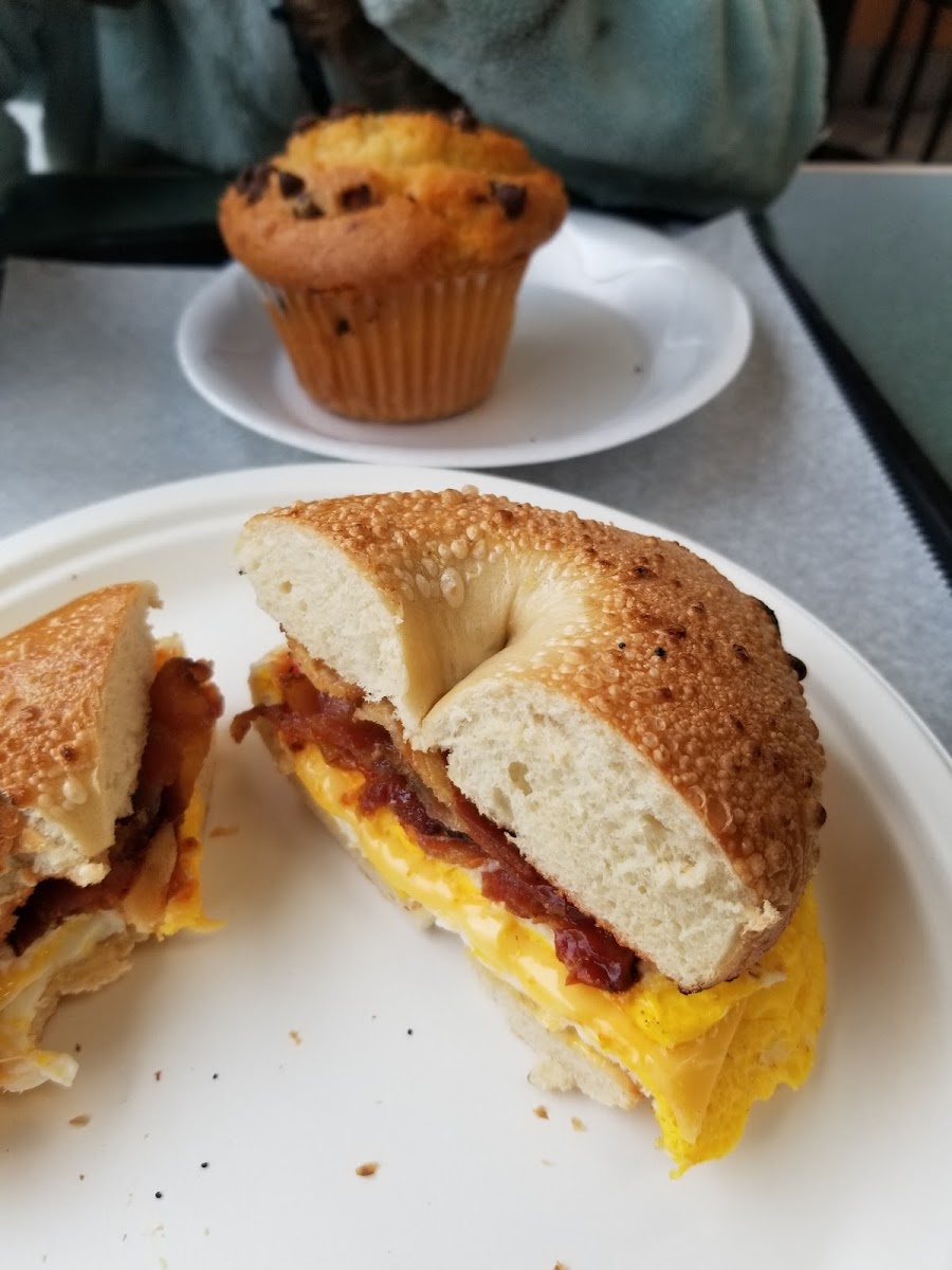 Was in town to visit a friend and wasn’t expecting this bagel sandwich to be a highlight of the trip but it definitely was. The pork ham egg and cheese combo was divine - and the bagels are best has fresh. Definitely a staple here!