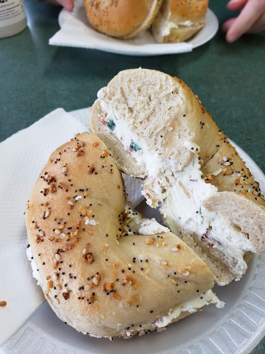 A great bagel shop with a large variety and friendly staff. Ordering can sometimes be a little bit disorganized as they take orders at the counter, or just randomly. I been skipped a few times, but no big deal. The bagels are the perfect level of soft and crunchy. They definitely put more than enough cream cheese, and have a large variety of both. Overall very happy with my experience